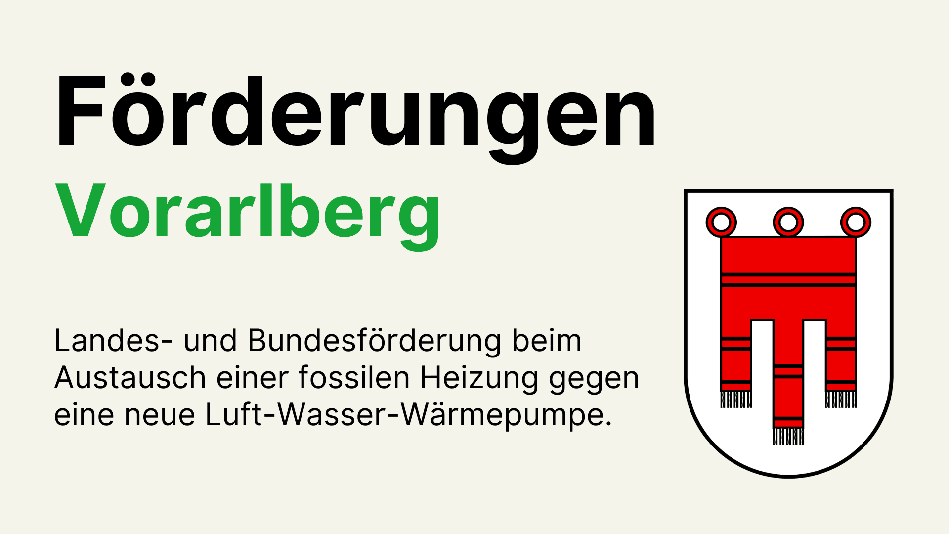 Wie die Förderung in Vorarlberg ausschaut? Neben der Bundesförderung „Raus aus Öl und Gas“, die bis zu 16.000 € (max. 75%) der Kosten für Ihre Wärmepumpe abdeckt, bietet das Land Vorarlberg zusätzlich eine Landesförderung von bis zu 2.000 € beim Umstieg von einem fossilen Heizsystem. Das bedeutet, Vorarlberger Haushalte können bis zu 18.000 € Förderung für ihre Wärmepumpe erhalten! Weitere Details und Voraussetzungen finden Sie in unserem Artikel.